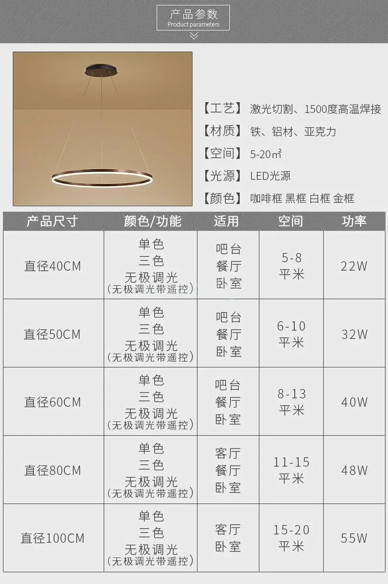 Nordic Minimalist Ring Led Ceiling Chandelier Dimmable for Table Dining Room Kitchen Bedroom Pendant Lights Home Decor Fixture