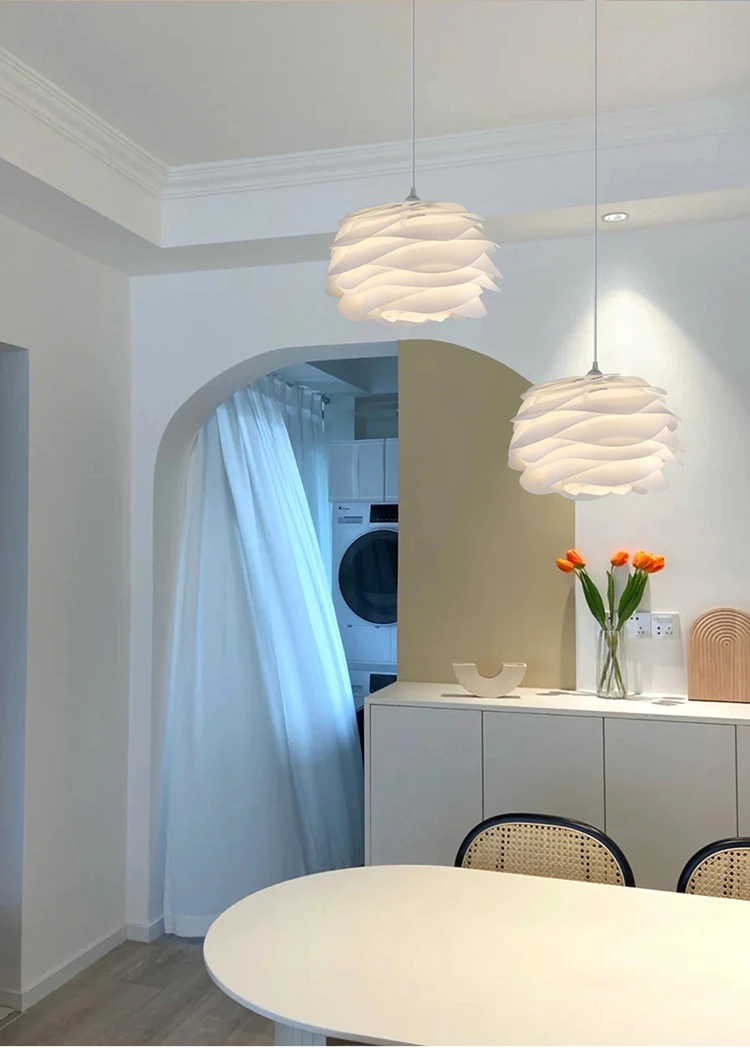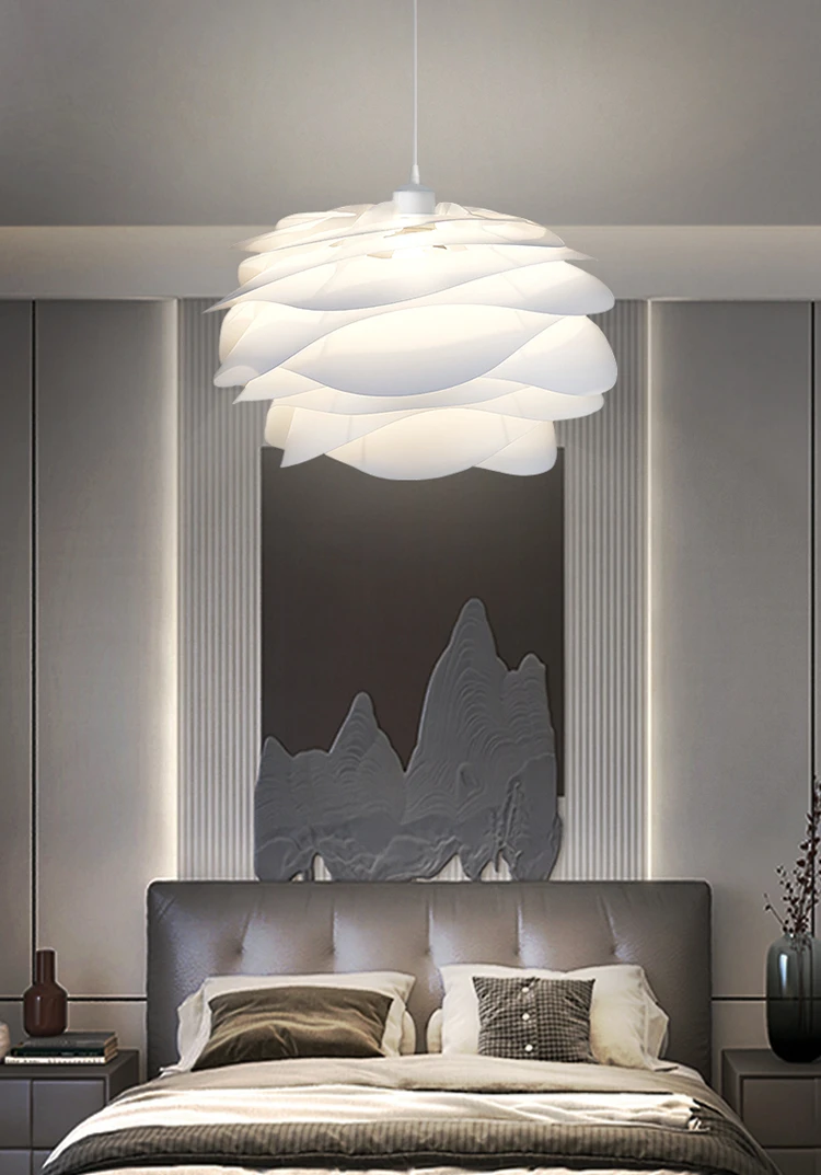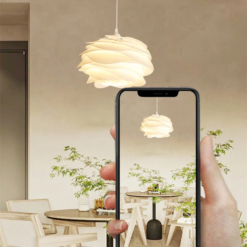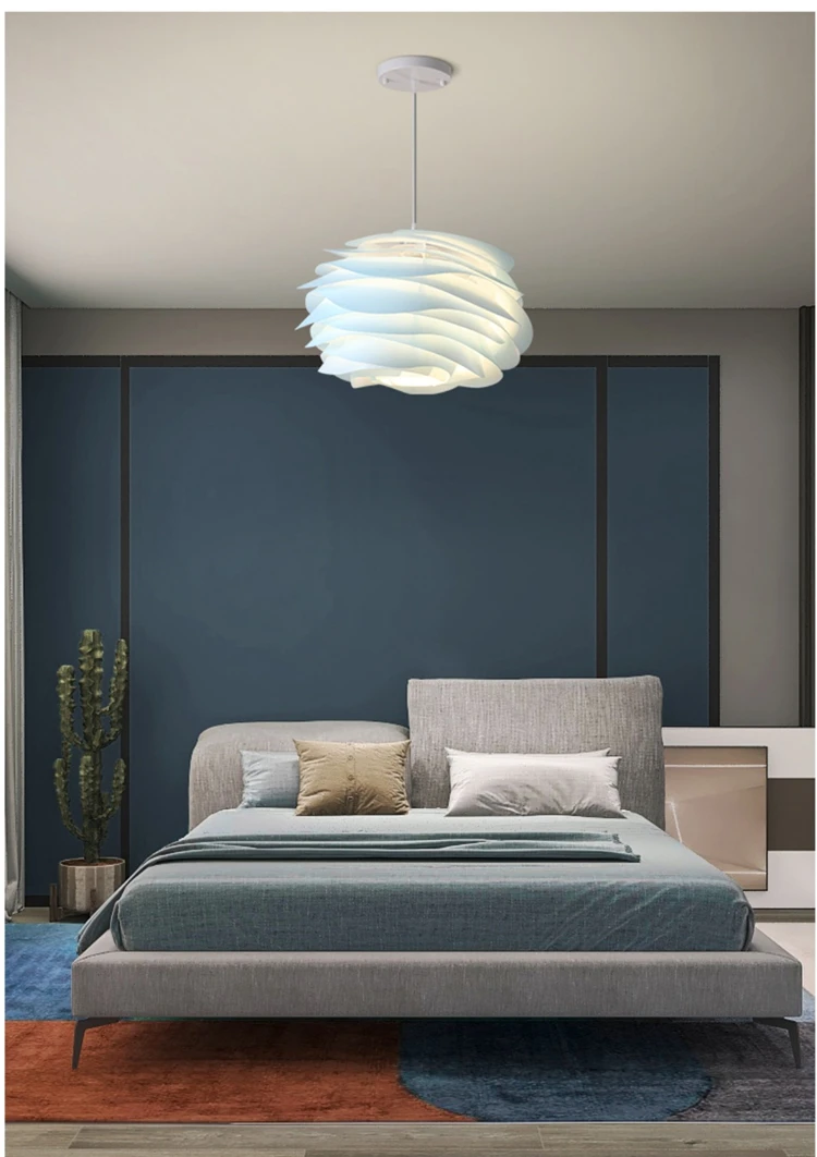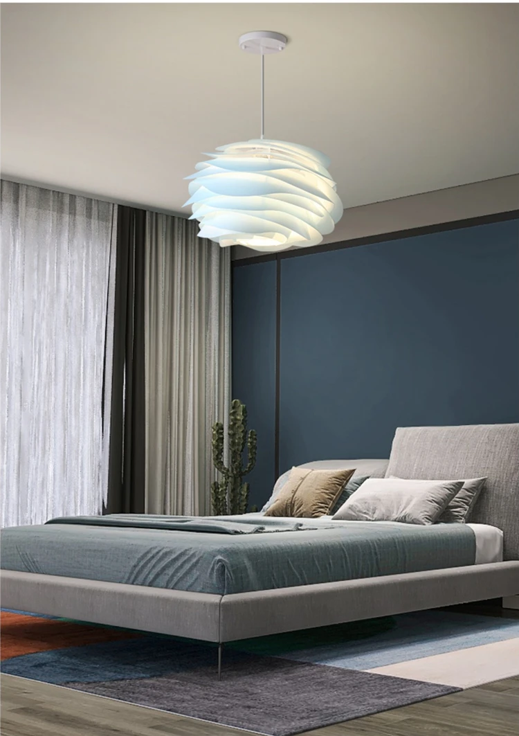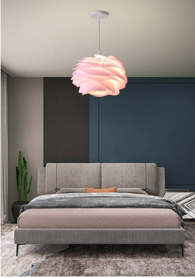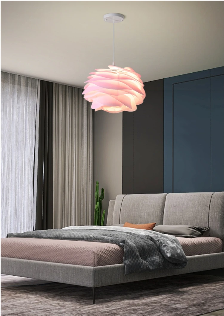Nordic Pink Blue Ceiling Chandelier For Bedroom Study Kitchen Hotel Bar Pendant Lamp White PVC Petal Lighting Fixture Free Bulb