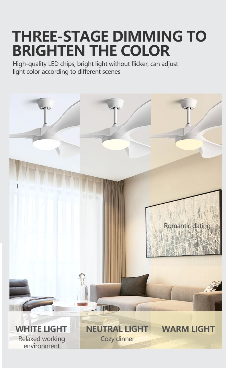 **42 52 60 inch ceiling fan 3 blades Modern minimalist Industrial ABS ventilator No light remote control Home Office Coffee Shop Factory **
