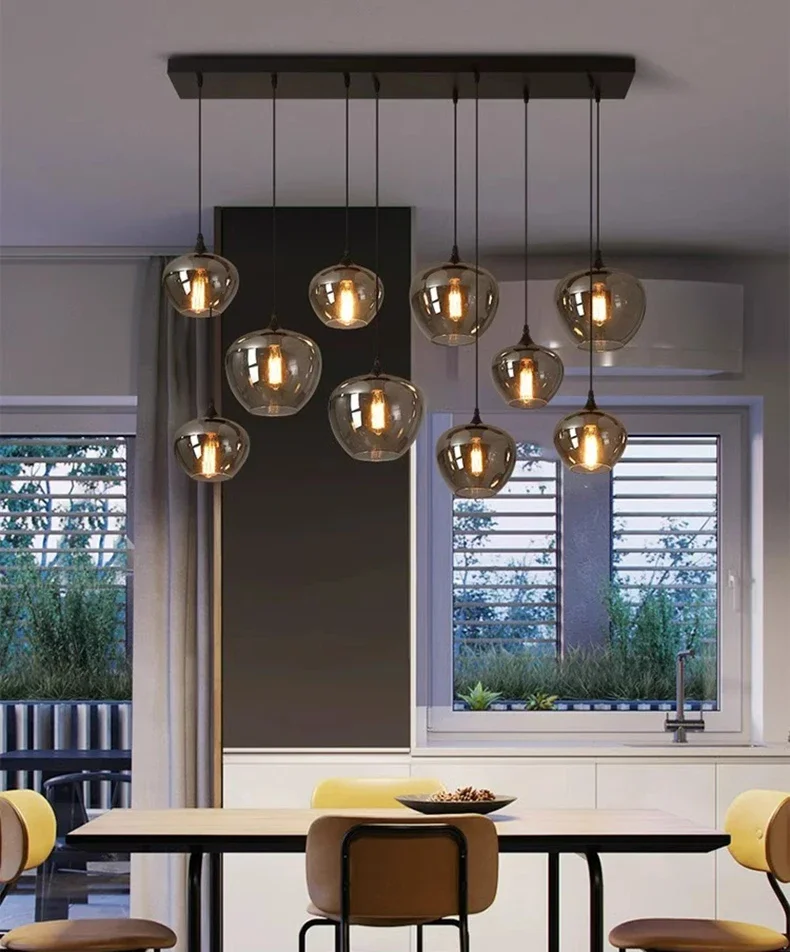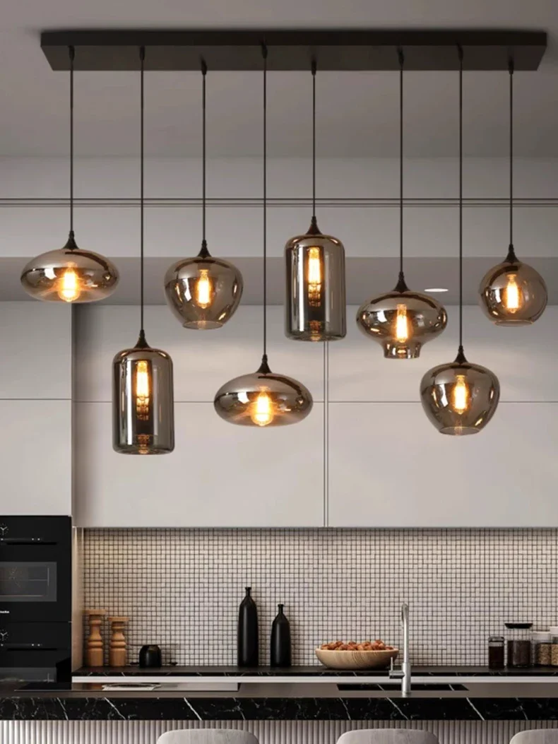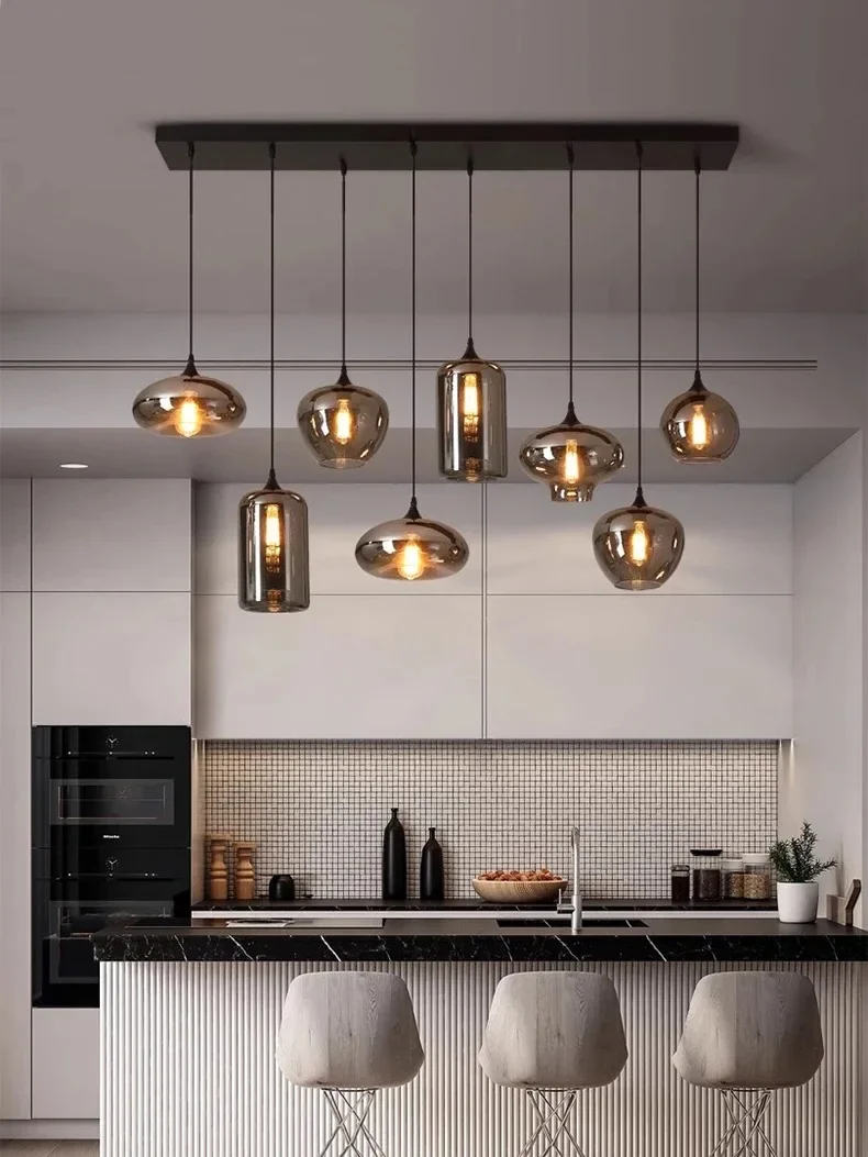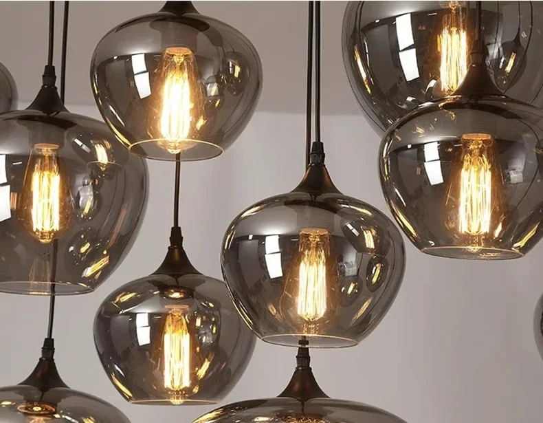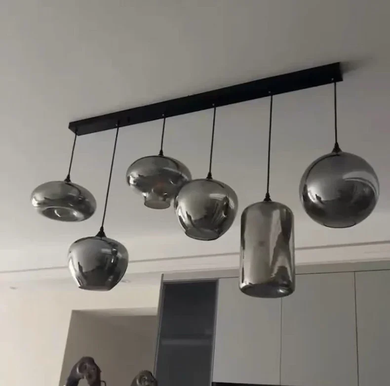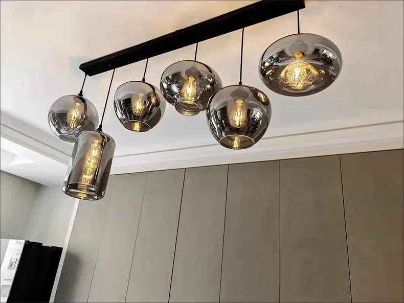 Nordic Soot Glass Ball Design Pendant Lights for Living Dining Table Room Kitchen Island Chandelier Home Decor Lusters Luminaire