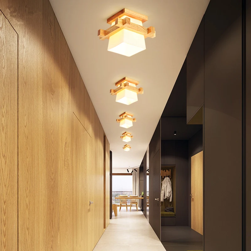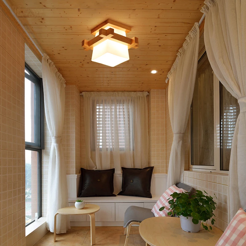 Japanese Warmly Home Cottage Tatami Wood Ceiling Lamp Led With Glass Lampshade Corridor Hallway Balcont E27 Modern Ceiling Light