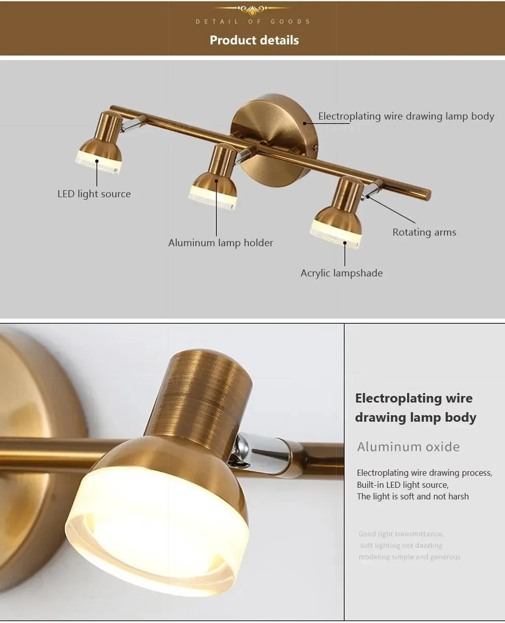 2. The product has a rotatable universal head that can rotate the lamp head from multiple angles.