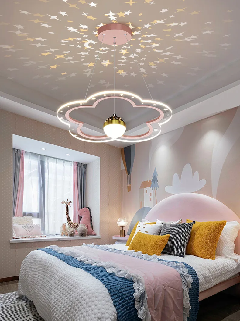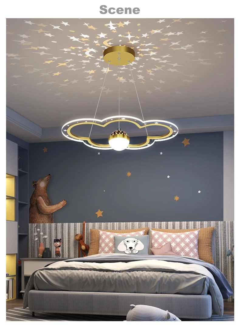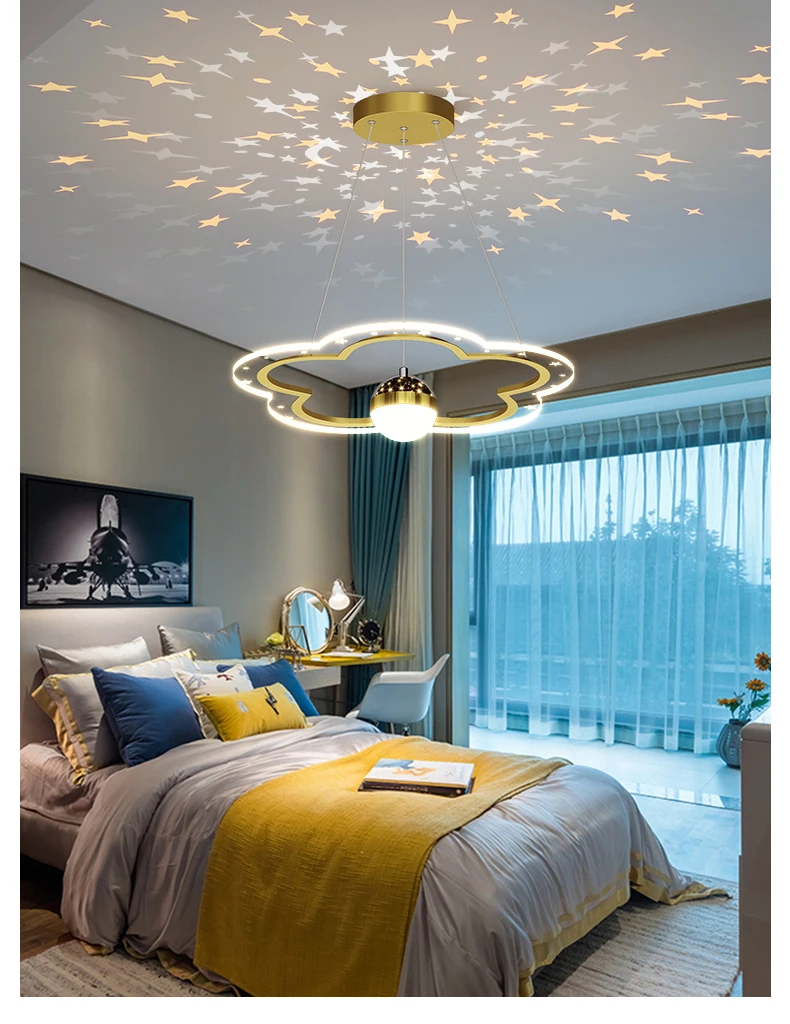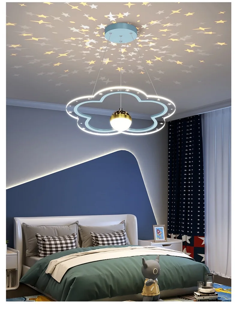 Modern LED Chandelier For Kid's Bedroom Study Hall Cloud Flower Shape Indoor Lighting Lamp Luster Fixtures Starry Sky Decor drop