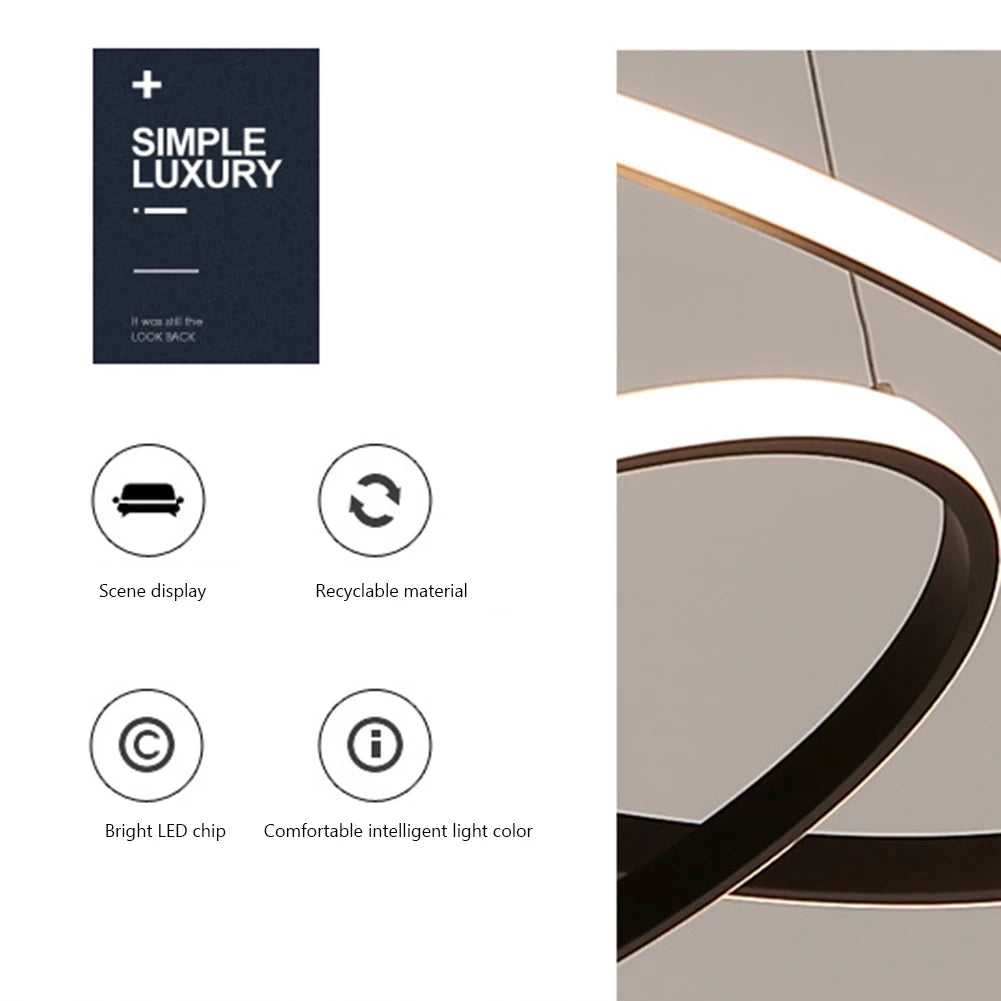 Feature: 1. Modern Chandelier: It is very suitable for modern home design. The linear chandelier can be easily DIY into various shapes by adjusting the cable. The ceiling lamp is suitable for living room, stair, corridor, lobby, kitchen island, craft room, hotel, villa, etc 2. Adjustable Chandeliers: All metal wire pendants have been pre wired and pre threaded, which is convenient for installation. The living room pendant can be easily adjusted during installation, which can adapt to many ceiling heights and ceiling lamp fixation. Let your imagination play freely, and enjoy your elegant and shining unique artistic decorative pendant lamp and unique lighting. 3. Moderate Size: The size of high pendant lamp is moderate, and it will not occupy too much space. Round size: 38cm+30cm+20cm, base diameter 20cm, embedded 18cm, height 4cm, black pendant lamp, cable length adjustable 120cm meters. 4. Warm Atmosphere: Frosted metal silica gel is anti-corrosion, not easy to scratch, easy to clean, better transmit light and heat dissipation, and geometric dome lamp creates a warm atmosphere. 5. High Brightness: High ceiling pendant lamp, rectangular lamp A new built-in LED chip light source, high brightness, energy saving and environmental protection. To provide you with perfect lighting, not only non flicker, gorgeous chandeliers can reduce eye fatigue after work or study. The average service life is 50000 hours. Specification: Light color: white light; Warm light;Three Light Sources(optional) Size: diameter 38+30+20cm Light source: 50W Applicable: living room/bedroom (15-25m ²) Material: aluminum, acrylic Lighting specifications: Color: black, Gold Process: electroplating Cable length: 1.2m (cable can be adjusted freely) Switch: None Voltage: 85-265v Application: It is suitable for pendant lighting in bedroom, dining room, living room, dining room, cloth shop and coffee room Note: ![]() 1 x Chandelier